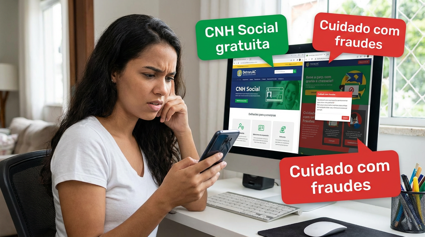 Inscrições para o Programa CNH Social 2026 no Acre já começaram, atraindo candidatos interessados em conquistar a primeira habilitação sem custos. Porém, antes de fazer sua inscrição, fique atento, pois golpistas têm criado sites falsos que simulam o Detran para enganar e cobrar taxas nesse processo que é 100% gratuito para todos os participantes.